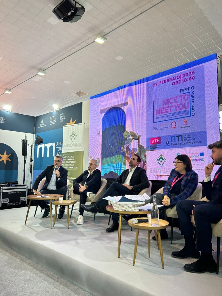 Lo sviluppo turistico di una destinazione passa sempre più dall’integrazione tra hospitality, territorio e filiere produttive locali. In quest’ottica di crescita, nella prestigiosa cornice del salone BTM (Business Tourism Management), Agromnia Soc. Coop. a r.l., realtà attiva nella valorizzazione e nello sviluppo di progetti agroalimentari innovativi, è lieta di annunciare la partnership con l’ATI 2026 (Apulia Tourism Investment). La collaborazione punta su un approccio orientato a sostenibilità,
